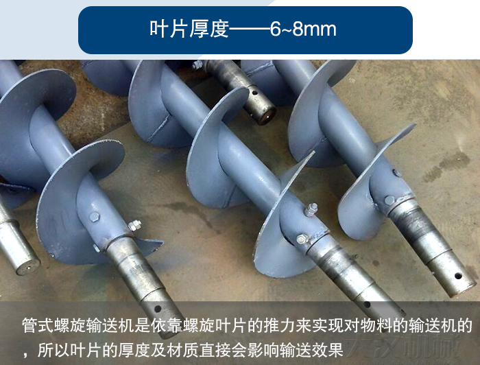 管式螺旋輸送機(jī)是依靠螺旋葉片的推力來(lái)實(shí)現(xiàn)對(duì)物料的輸送機(jī)的,所以葉片的厚度及材質(zhì)直接會(huì)影響輸送效果,葉片厚度一般在6~8mm左右,也可以根據(jù)物料的耐磨程度來(lái)加厚,這些直接與設(shè)備的使用壽命掛鉤的,所以用戶(hù)在選型時(shí)要特別注意這一點(diǎn)。