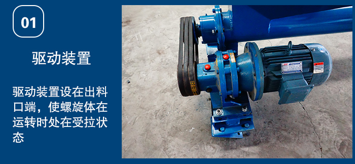 1)驅(qū)動(dòng)裝置:采用擺線針輪輪減速機(jī)或軸裝式硬齒面齒輪減速機(jī),設(shè)計(jì)時(shí)應(yīng)盡可能將驅(qū)動(dòng)裝置設(shè)在出料口端,使螺旋體在運(yùn)轉(zhuǎn)時(shí)處在受拉狀態(tài)。頭部裝配有推力軸承,可承受輸送物料時(shí)產(chǎn)生的軸向力。