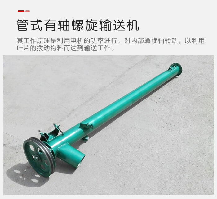 管式有軸螺旋輸送機其,工作原理是利用電機的功率進行,對內(nèi)部螺旋軸轉(zhuǎn)動,以利用葉片的撥動物料而達到輸送工作。