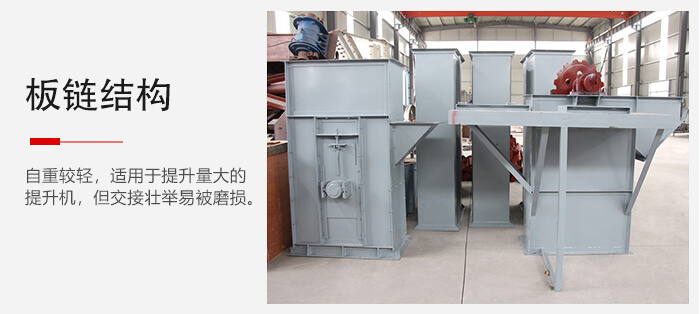 2、板鏈結構比較牢固,自重較輕,適用于提升量大的提升機,但交接壯舉易被磨損。