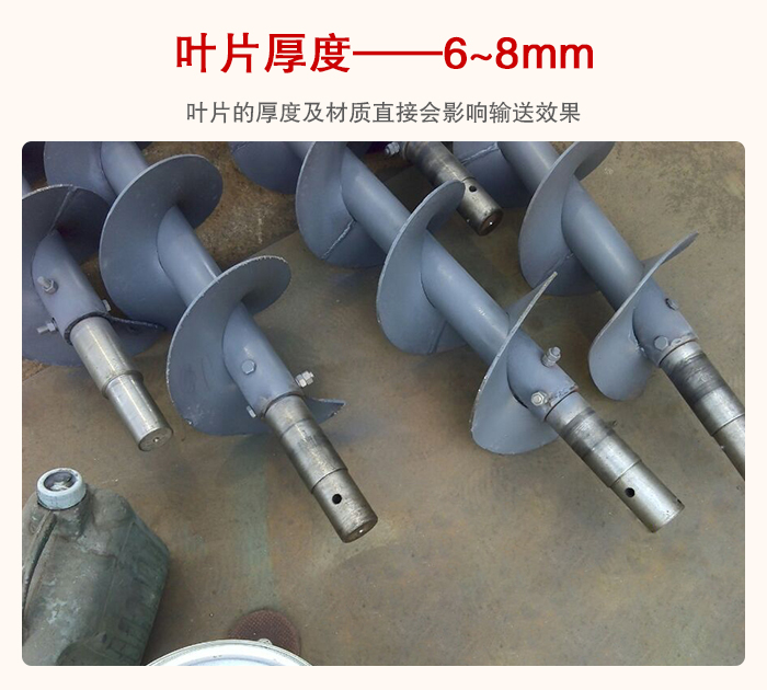 管型螺旋輸送機(jī)是依靠螺旋葉片的推力來實現(xiàn)對物料的輸送機(jī)的,所以葉片的厚度及材質(zhì)直接會影響輸送效果,葉片厚度一般在6~8mm左右,也可以根據(jù)物料的耐磨程度來加厚,這些直接與設(shè)備的使用壽命掛鉤的,所以用戶在選型時要特別注意這一點。