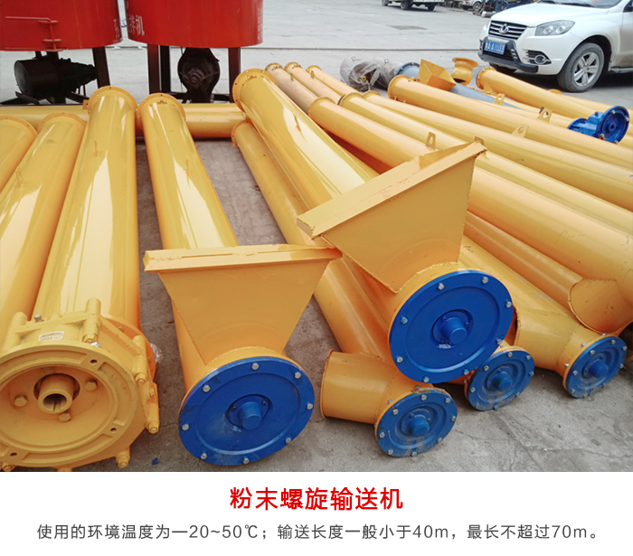 5)粉末螺旋輸送機(jī)由螺旋機(jī)本體、進(jìn)出料口及驅(qū)動(dòng)裝置三部分組成。