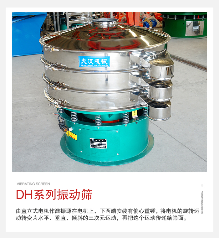簡介:DH系列振動篩是一種高精度細(xì)粉篩分機(jī)械其振動運(yùn)轉(zhuǎn)原理很多企業(yè)也稱之為“三次元振動篩”。