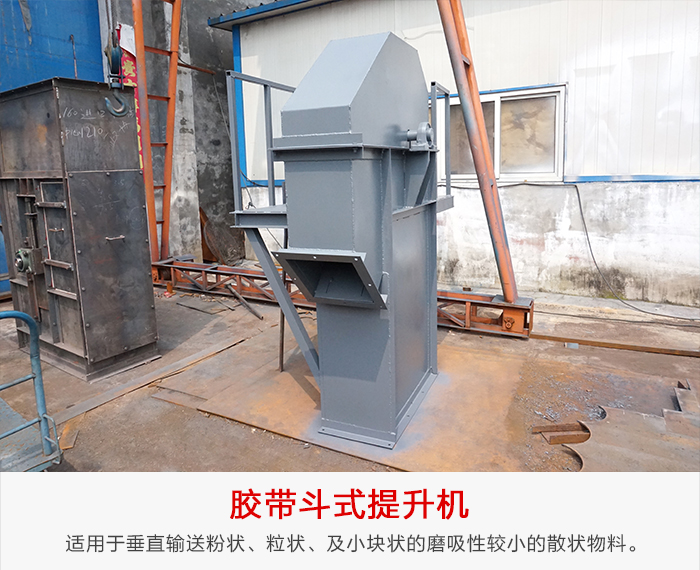 膠帶斗式提升機(jī)適用于垂直輸送粉狀、粒狀、及小塊狀的磨吸性較小的散狀物料,如糧食、煤、水泥、碎礦石等,提升高度不超過40m。TD型按JB3926-85《垂直斗式提升機(jī)》標(biāo)準(zhǔn)設(shè)計(jì)制造,目前國內(nèi)常用的斗式提升機(jī)均為垂直式,較新型。膠帶斗式提升機(jī)備有四種料斗Q型(淺斗)、H型(弧底斗)、ZD型(中深斗)SD型(深斗)。